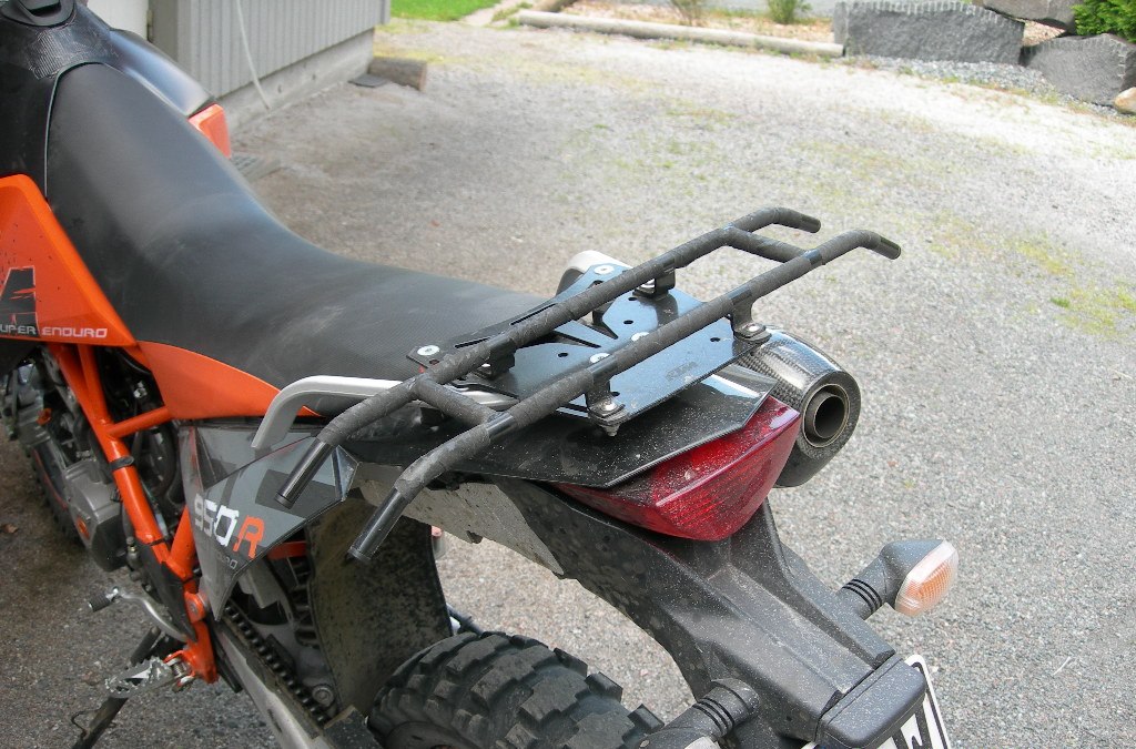 Tämmöiseen ratkaisuun päädyin Kriegan 12 l sivulaukut , systeemi testattu Venäjällä ja toimii hyvin , saa helposti pois yöksi