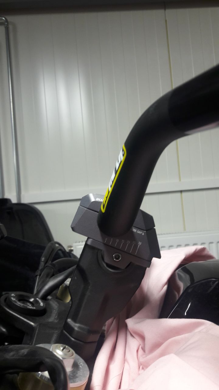 Tänään aloittelin Protaperin Woods Low - stongan asentamista. Pitää vielä odotella lämpökahvoja ja kahvasuojia että saa asennuksen loppuun. Tuo stonga on Protaperin matalin mitä löysin. Pari senttiä orgista matalampi päistä sekä enemmän pulbackiä (sweep). Meni syksyllä yläselkä ja niska pahasti jumiin orgis-stongalla ja kuvissa näkyvillä SW-Motechin raisereilla. Nyt tuntuisi nuo raiserit toimivan kun stonga on matalampi. Olkapäät eivät enää ole kramppiasennossa. Stongaa pystyy siirtelemään raisereilla edestakaisin +-3 cm.