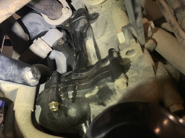 Kun tulin takasin niin huomasin selkeän öljyvuodon lohkon etureunasta. Pesin jäljet pois, käynnistin pyörän uudelleen ja tiirailin tarkemmin vuotoja. Katsoisin että vuotaa kannen ja lohkon välistä pakosarjan alapuolelta öljyä.